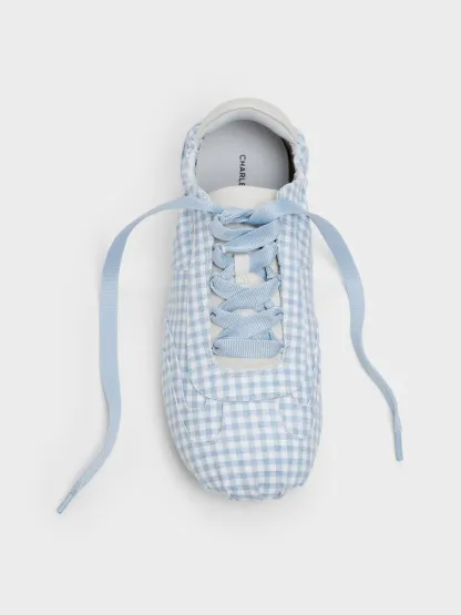 These light-blue Cece sneakers feature a slim low-top silhouette, top-stitch detailing and subtle ruching that adds a feminine touch to the design. Finished in an eye-catching gingham print, they pair well with casual basics to create a playful off-duty look.