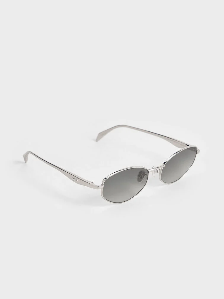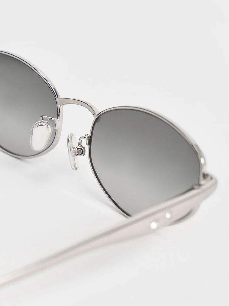 Celestia Crystal-Accent Oval Sunglasses - silver
