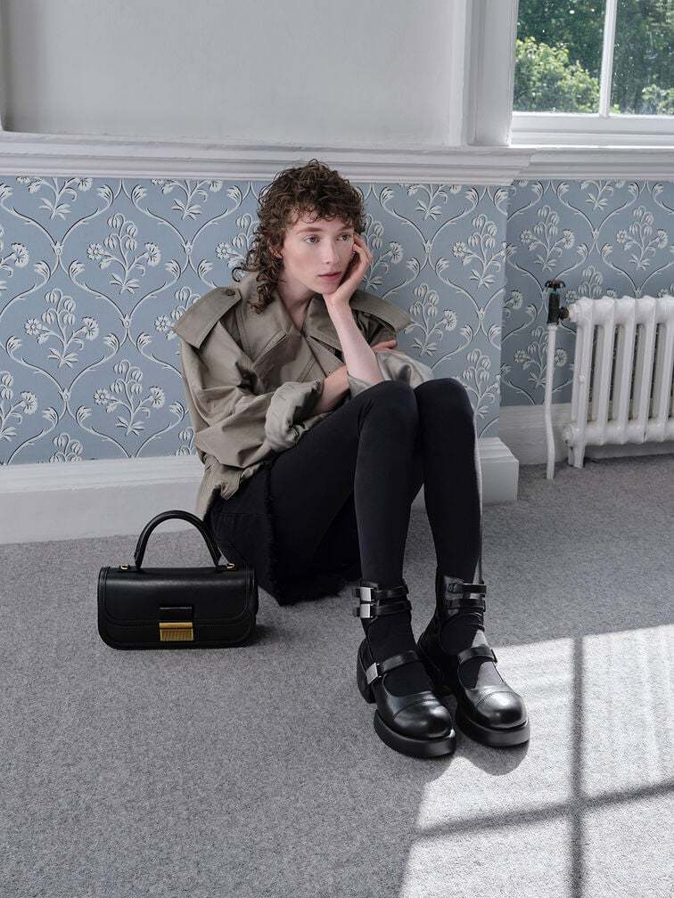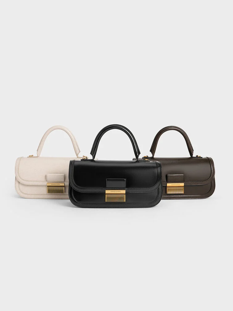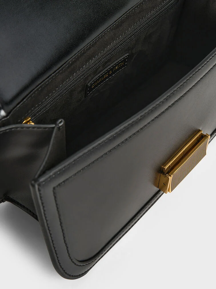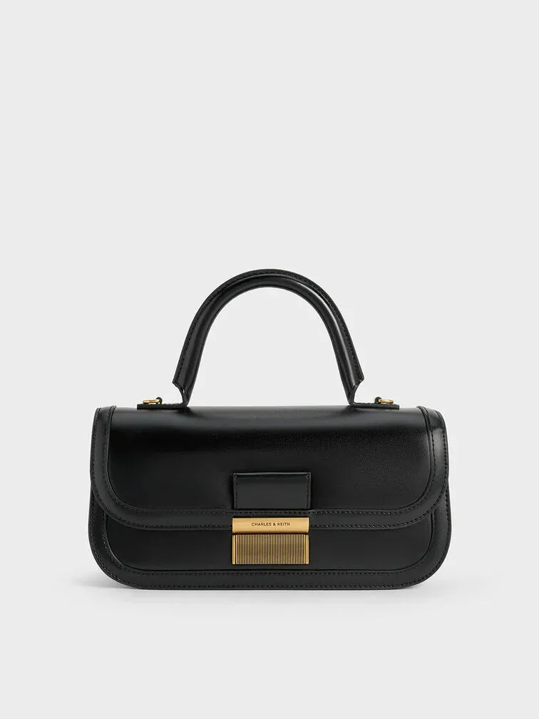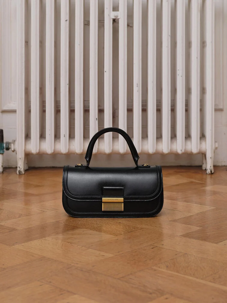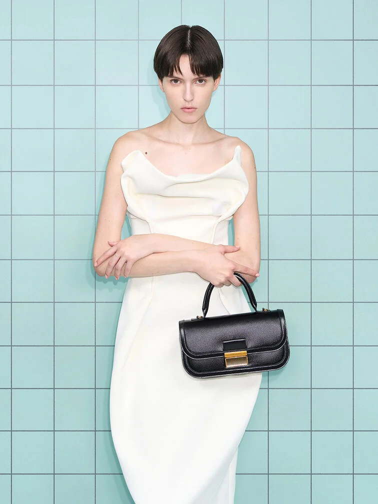 Fans of the Charlot will be happy to find that this iconic bag has been refreshed with an interesting new silhouette. Featuring an elongated shape, the polished appeal of the classic Charlot design has been further refined with top handles. For a touch of shine, the gold-tone metallic push-lock detail complements the timeless black finish. Equipped with an adjustable strap, you can carry this bag as either a crossbody bag or by its top handles.