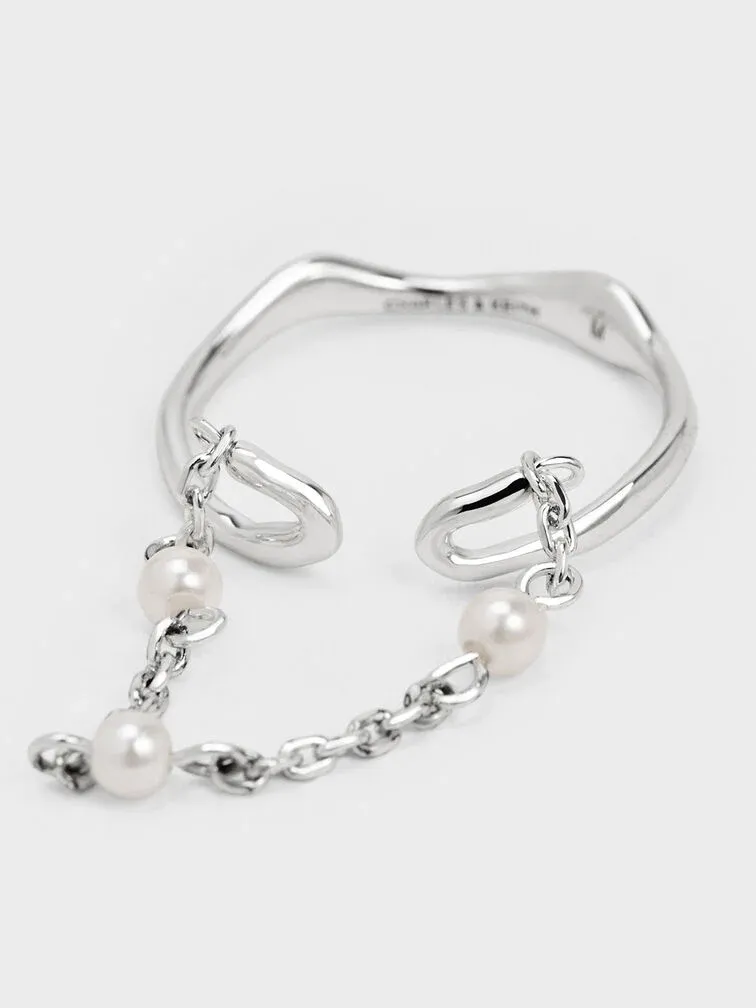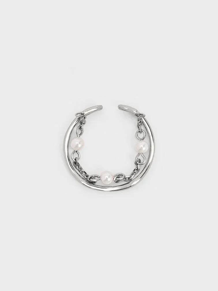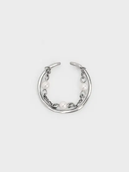 Corrine Pearl Chain-Link Double Ring - silver