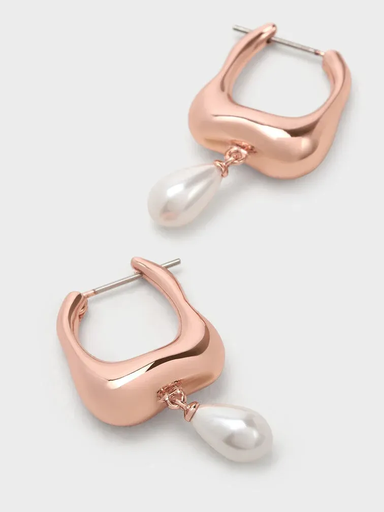 Corrine Teardrop Pearl Hoop Earrings - rose gold