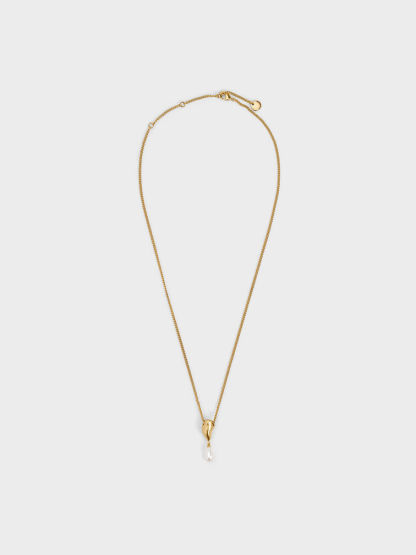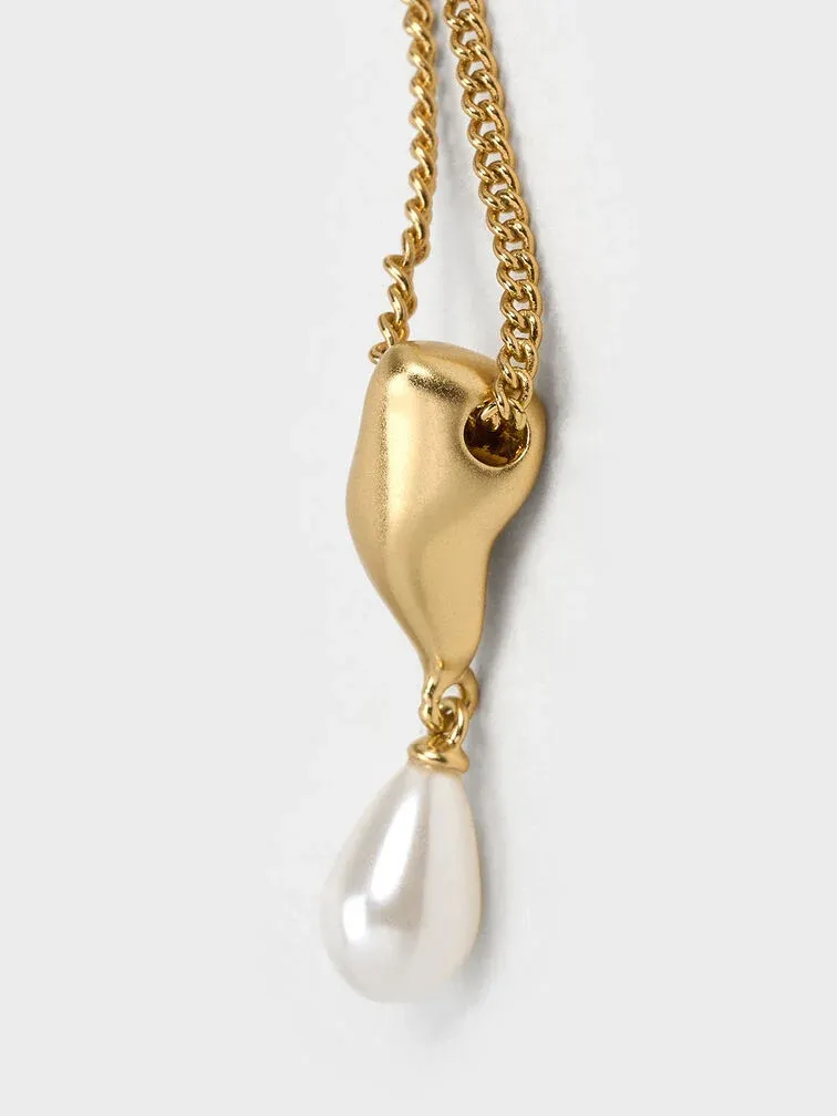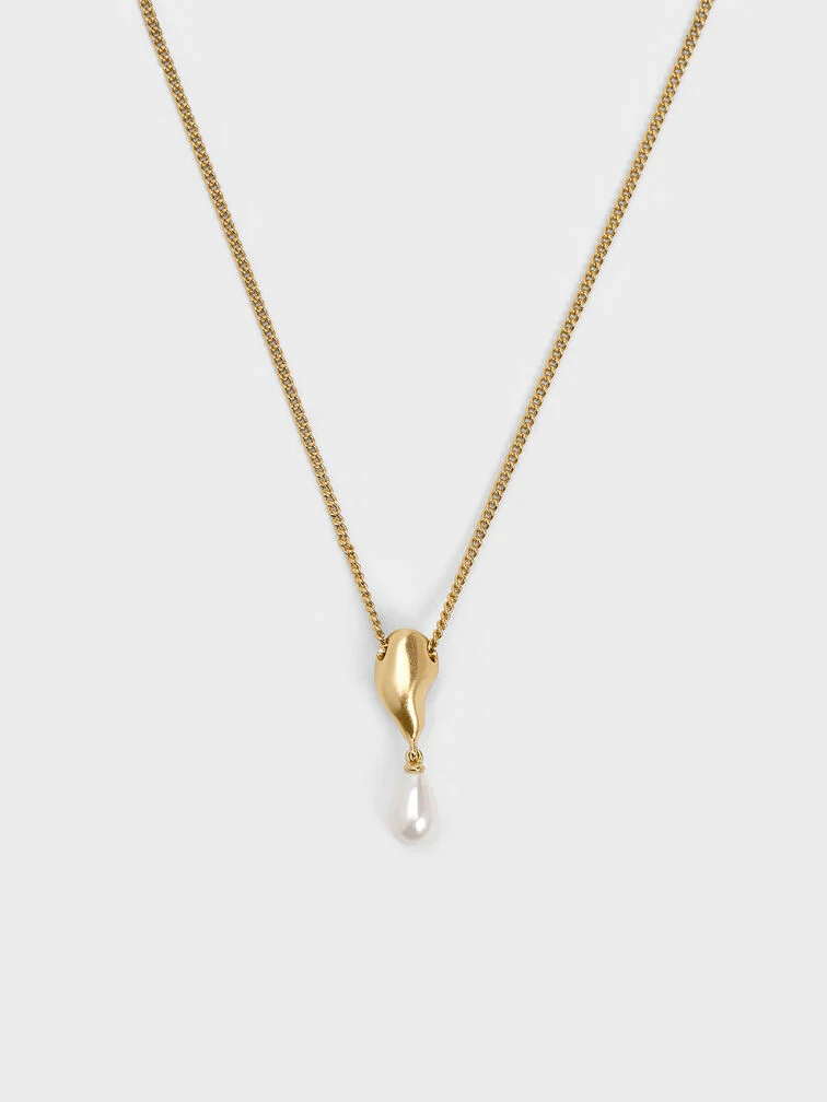 Corrine Teardrop Pearl Necklace - brush gold
