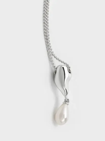 Corrine Teardrop Pearl Necklace - silver