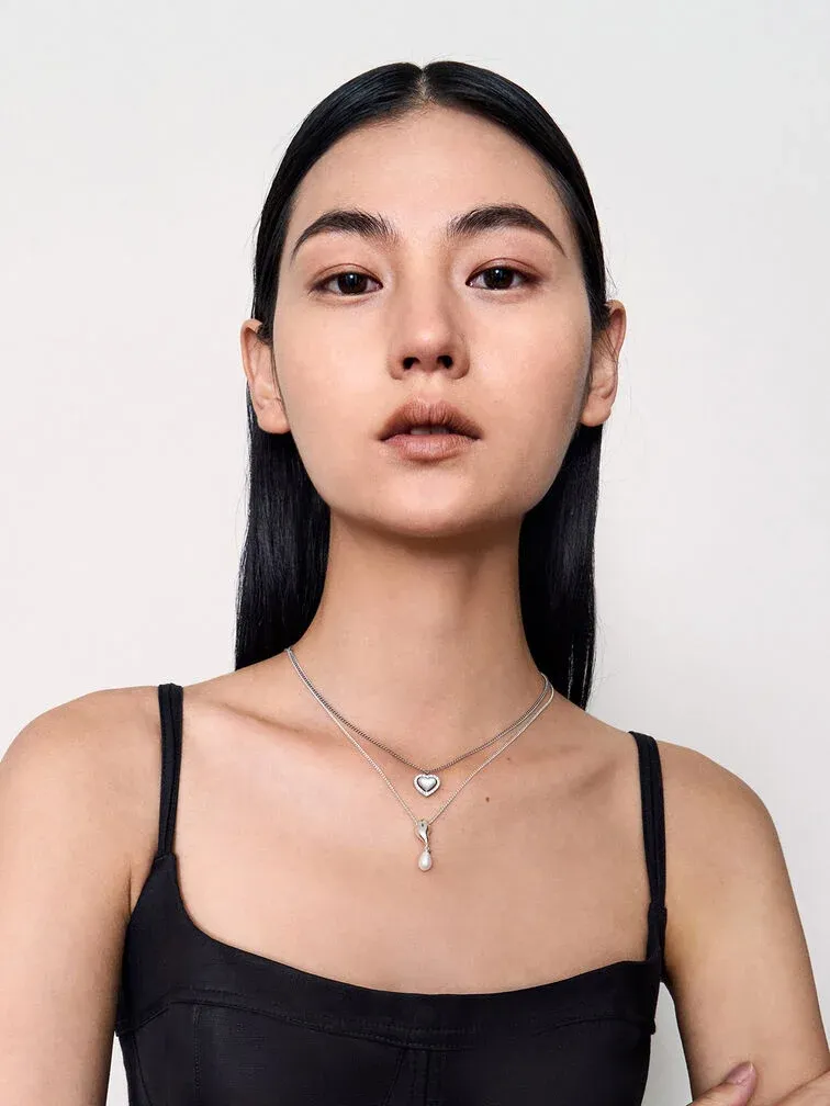 Elegant and understated, this Corrine pearl necklace in shiny silver features a single teardrop-shaped faux pearl that hangs off a sculptural rose gold-tone pendant. The smooth curves of the pearl is juxtaposed against the fluid lines of the pendant -- the result is striking and sophisticated. With pearls trending right now, this is the perfect piece to add to your jewellery collection right now.