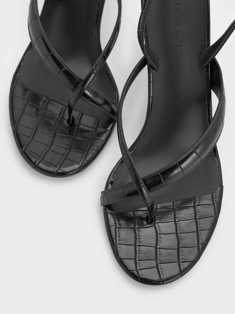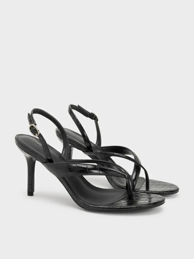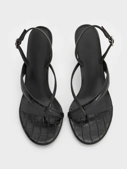 These thong sandals feature a croc-effect finish, sleek stiletto heels and adjustable slingback straps. Let them elevate your nine-to-five looks with their everyday elegance -- they will also work just as well when paired with off-duty outfits.