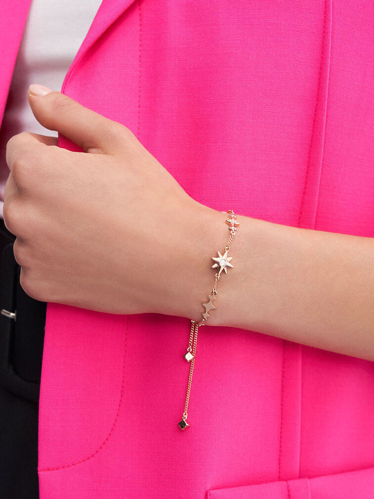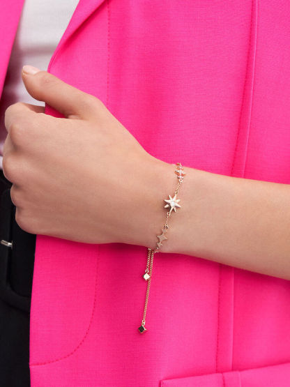 Add a bit of sparkle to your everyday outfit with this fine bracelet. Featuring a crystal-embellished star centrepiece and sparkle charms along the delicate wrist chain, this pretty piece is especially stunning when it catches the light. The subtle shine of this dainty jewellery will complete a sophisticated evening look perfectly.