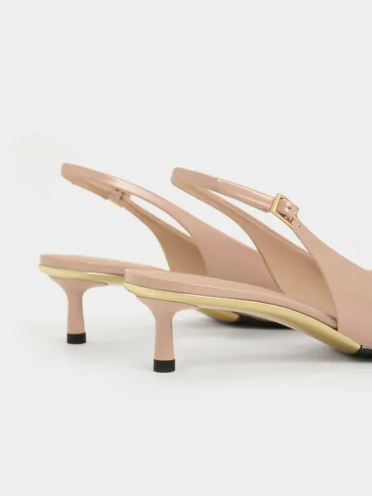 Exude timeless elegance in these versatile slingback pumps that will give you plenty of fashion mileage. Featuring sleek pointed toes and a high-shine nude patent finish, they are an eye-catching basic that will instantly elevate any outfit. Perched on dainty kitten heels, these slingback pumps offer a nice little height boost without compromising comfort, making them perfect for all-day wear.