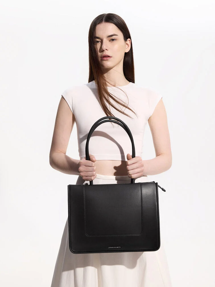 This Daylla tote in black will prove to be a daily companion that you can count on to hold all your essentials with ease. It features one main compartment and a zip closure that ensures your items are kept secure. Fitted with elongated curved handles that ensure it will hang comfortably on your shoulder, this piece makes for a great everyday bag.