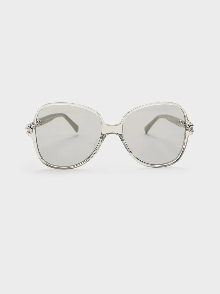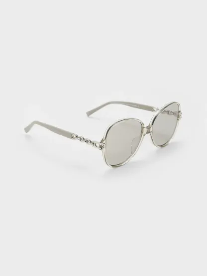 Delaney Chain-Link Butterfly Sunglasses - minted grey