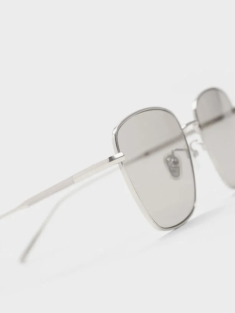 Delta Metallic-Rim Square Sunglasses - silver