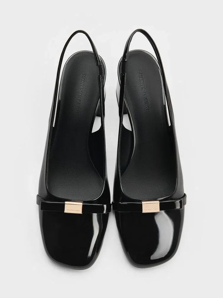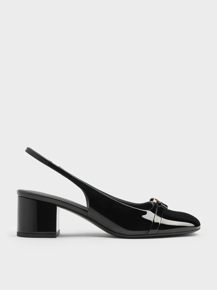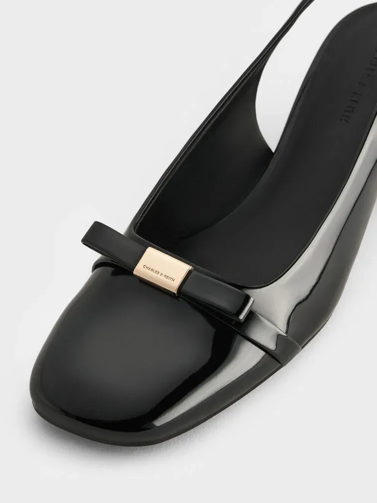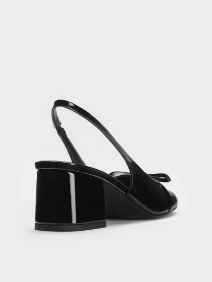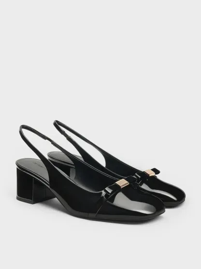 Dorian Patent Bow Slingback Pumps - black patent