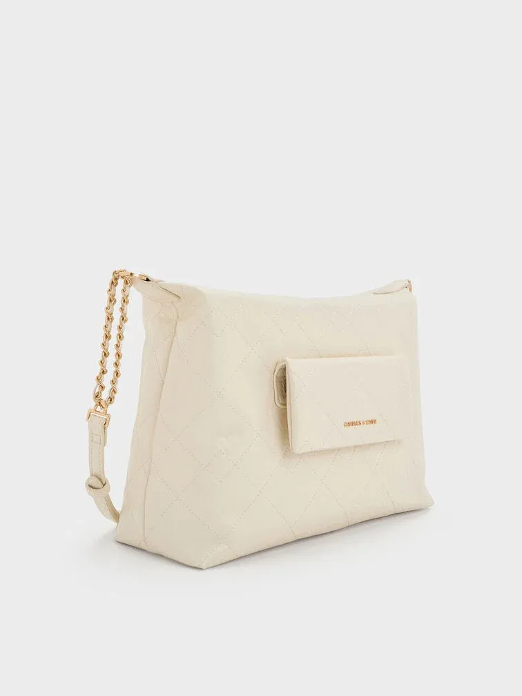 Duo Quilted Front-Pocket Hobo Bag - cream