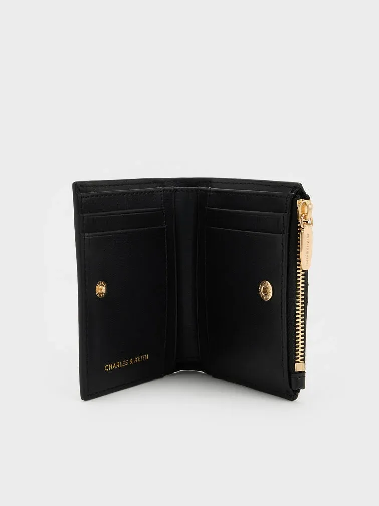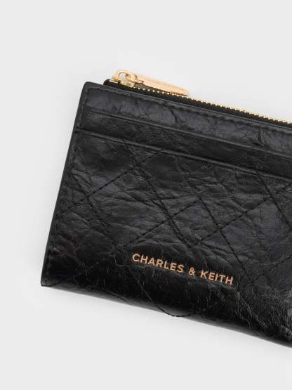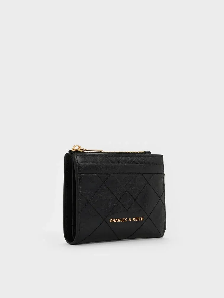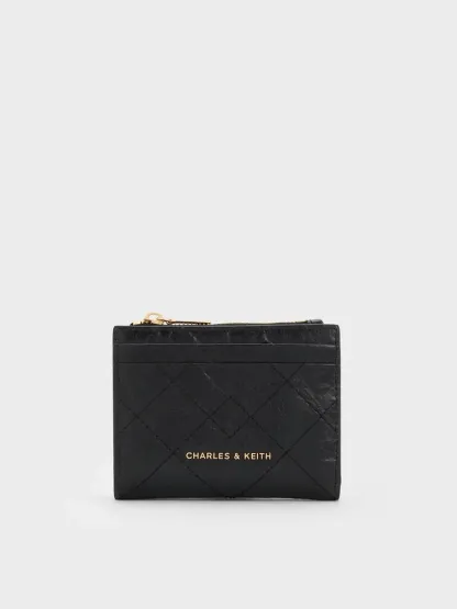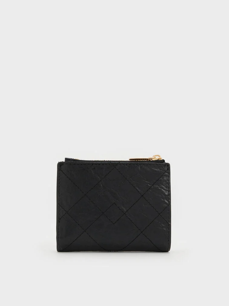 This Duo wallet in black features a diamond-quilt stitch-trim design, a top zip and a snap-button closure. Carry it in the palm of your hand during quick errand runs or slip it into your everyday bag.