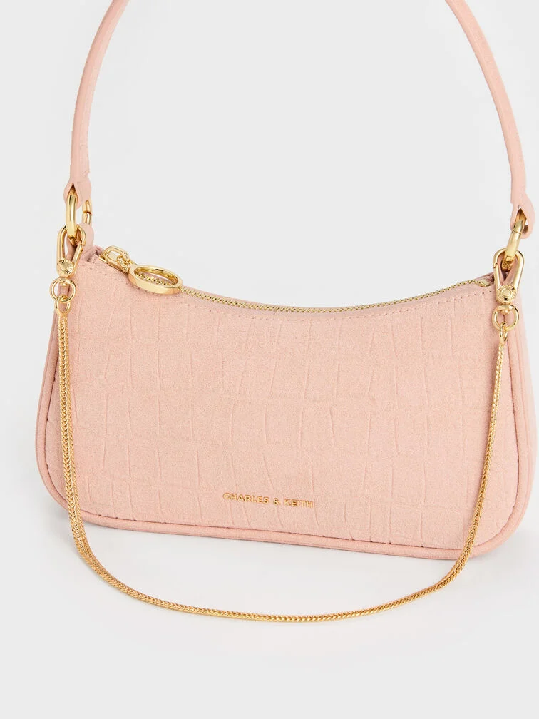 This Elspeth shoulder bag in pink features a chain strap, a top-zip closure, and a detachable handle. Its stylish classic structure will enhance your office looks with subtle sophistication.