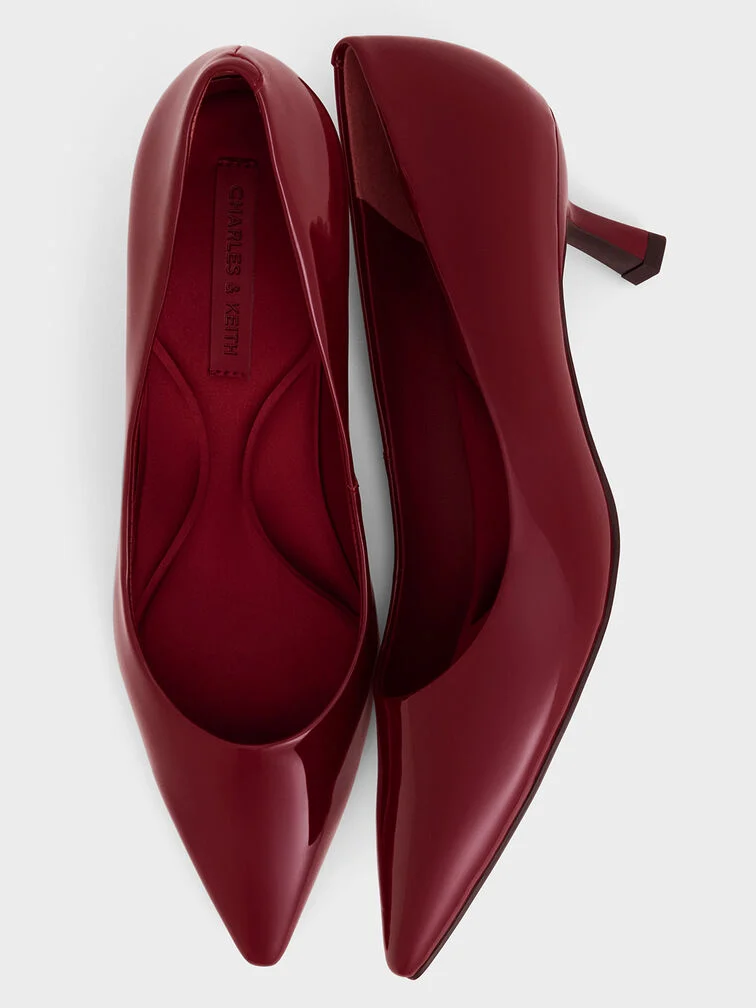 Emmy Patent Pointed Kitten Heel Pumps - red