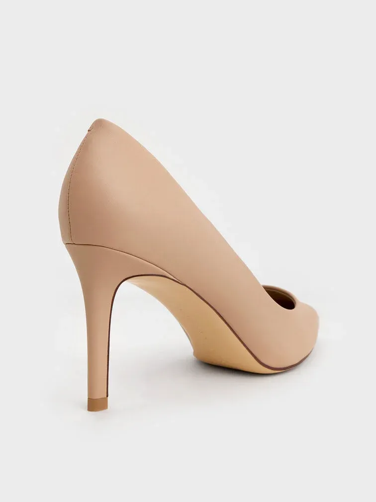 Nothing says classy quite like a pair of nude pumps. This version comes with pink undertones, plus a fierce pointed-toe design that will have you dressed to the nines for any occasion. Set on a sleek 8cm stiletto heel that is just irresistible, these pumps are all you need to put your best foot forward every day. For a glamorous look, we recommend styling them with a puff-sleeve dress and a structured bag.
