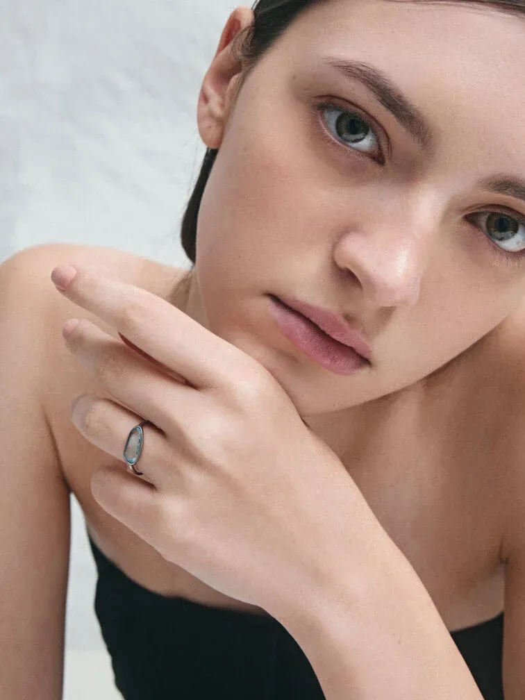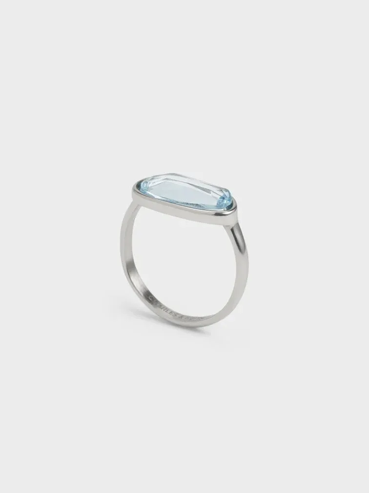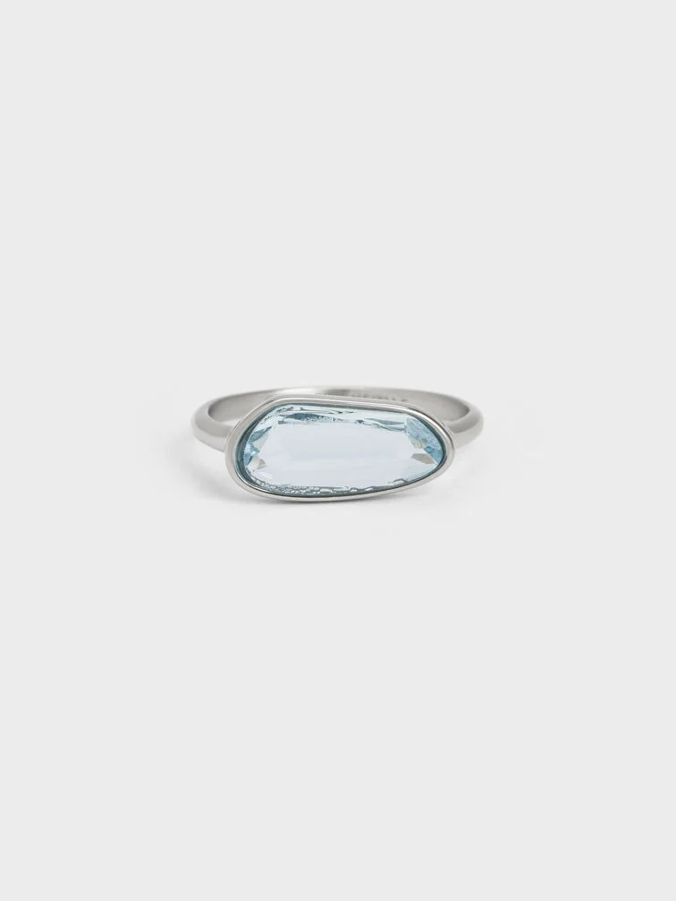 You can count on this Evangeline ring to add a vibrant pop of colour to any look. It features a sparkling turquoise faux crystal as its focus, which is complemented by a silver-tone stainless steel band.