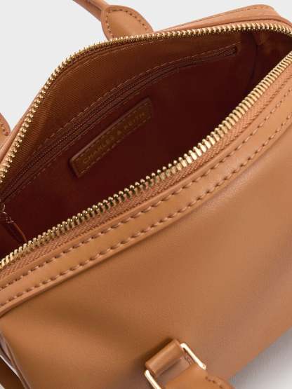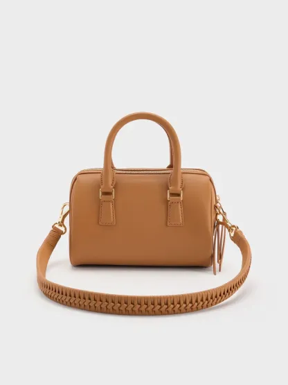 Everyone is falling in love with the bowling bag all over again. If you feel the same, consider introducing our russet-brown Everleigh bowling bag into your wardrobe rotation. It is just as elegant and versatile as a classic black bag, featuring a detachable knot charm and braided shoulder strap that add distinctive detail to its minimalist design.