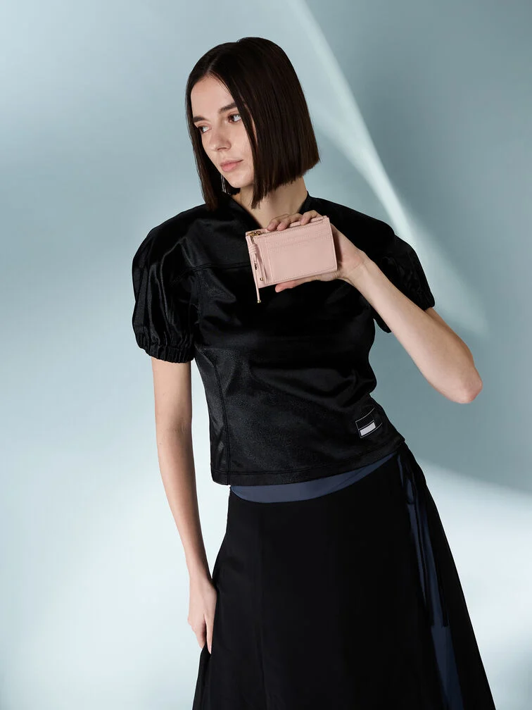 Our light-pink Everleigh wallet is your go-to for days when you are in a girly mood. Featuring both a zip and bill compartment, it also boasts multiple card slots -- both concealed and exposed -- for optimal organisation. Its compact size belies its functionality, an ideal companion for quick errands or lunchtime outings.
