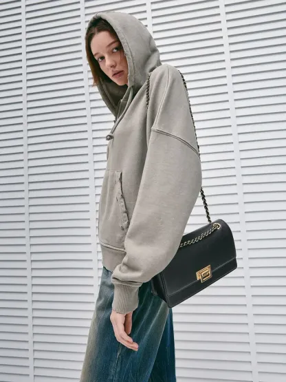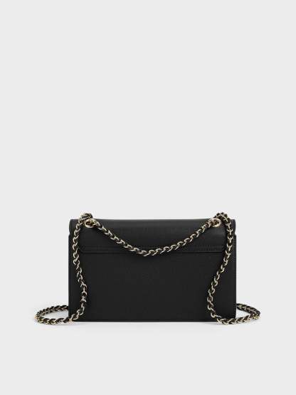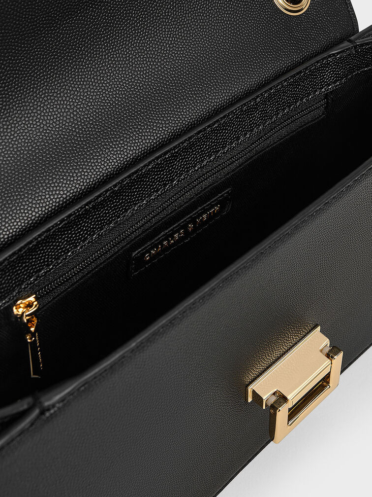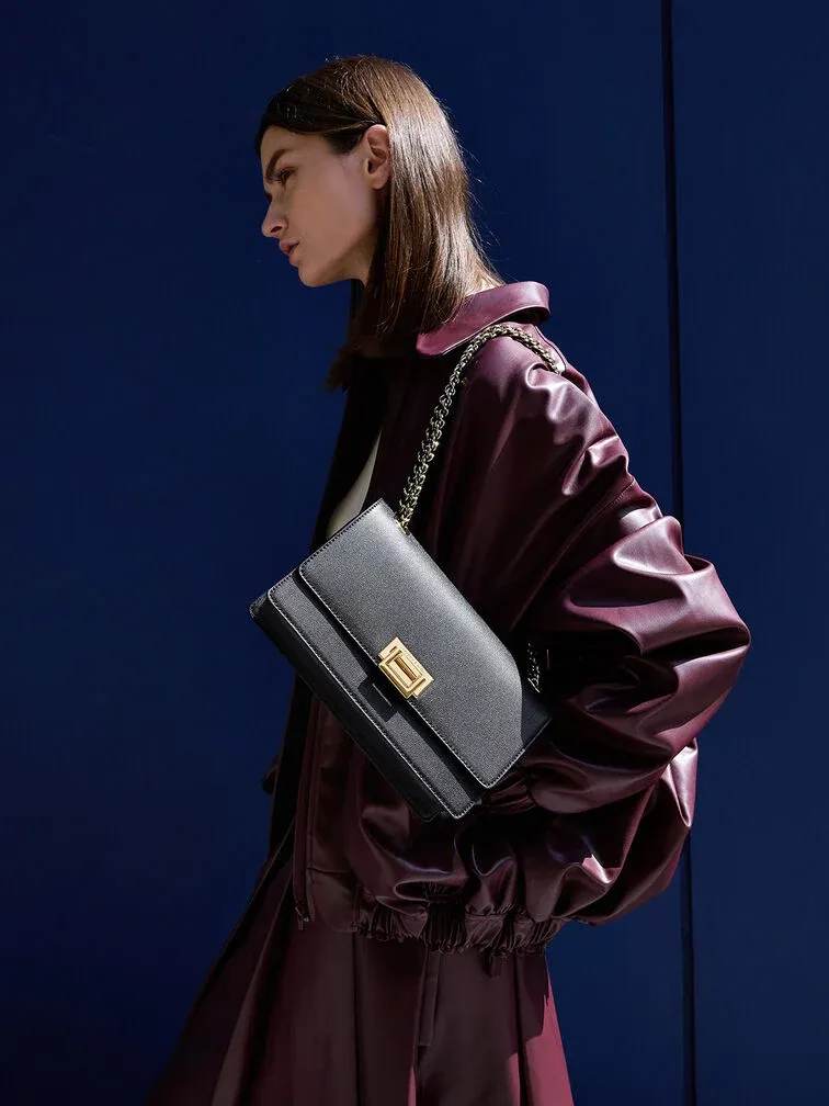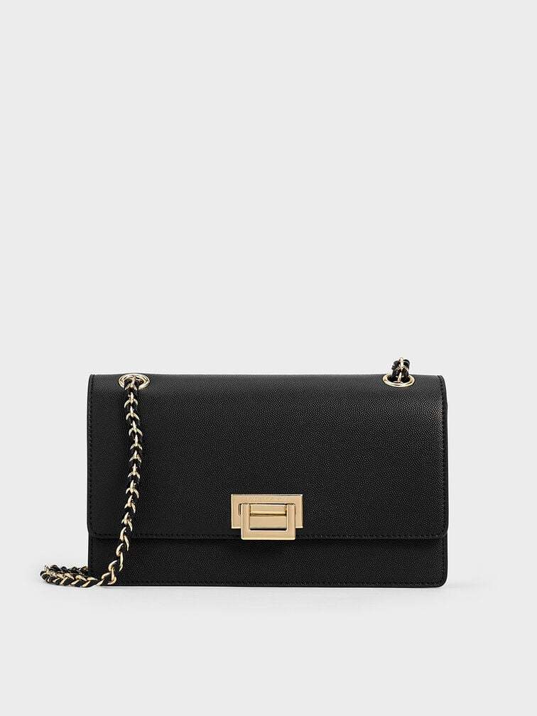 There is always an occasion for the Everline shoulder bag. The classic front-flap silhouette is secured by a metallic push-lock closure, which gives the sleek black finish a touch of shine. The rest of the design is kept minimal, so it will pair effortlessly well with casual and dressy outfits alike. Complete with a braided strap, you can opt to carry it as a shoulder bag, or lengthen the chain to sling it across the body.