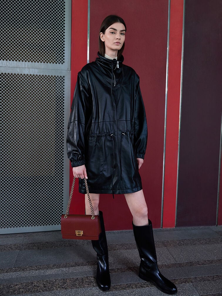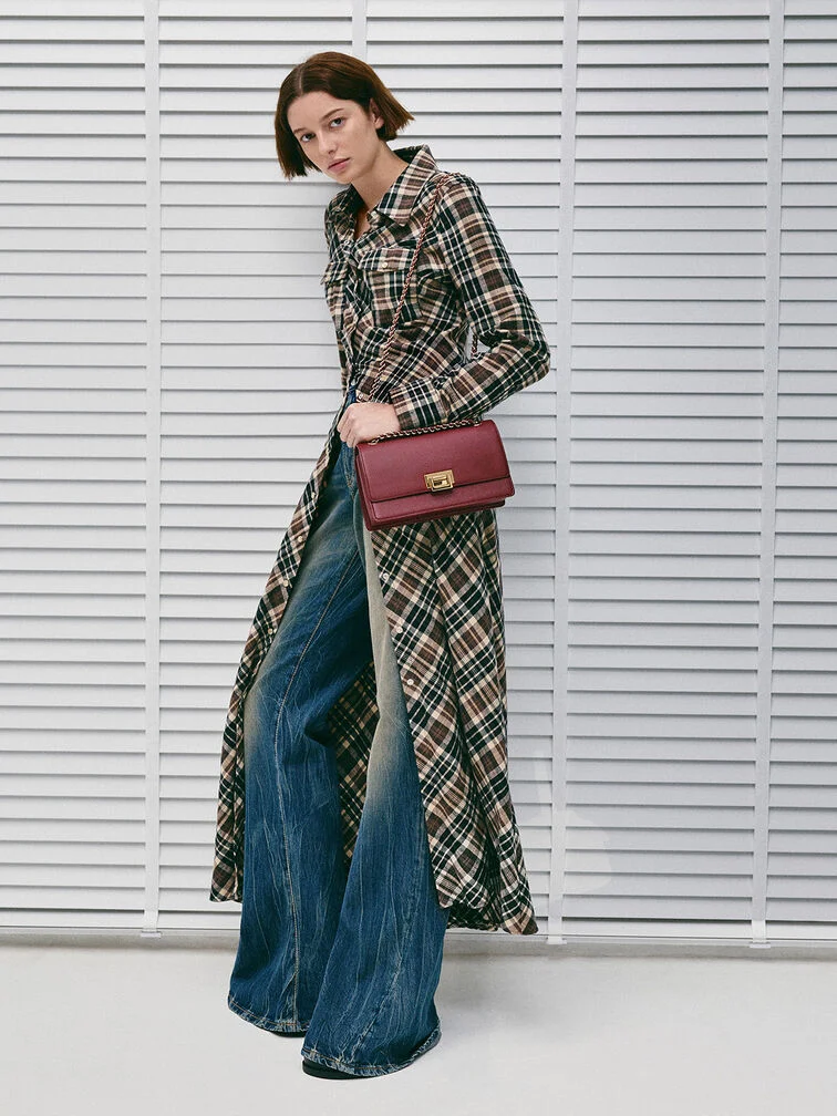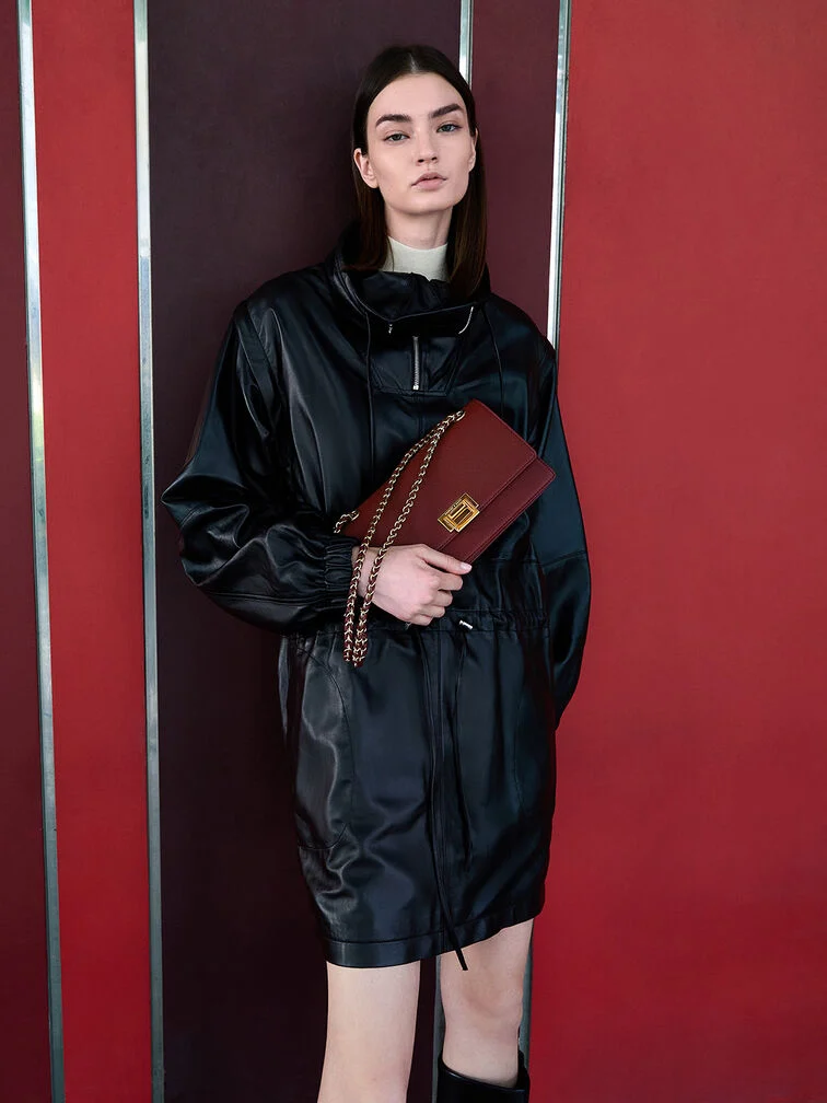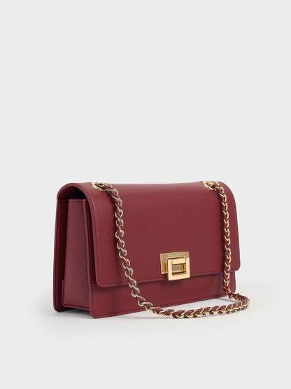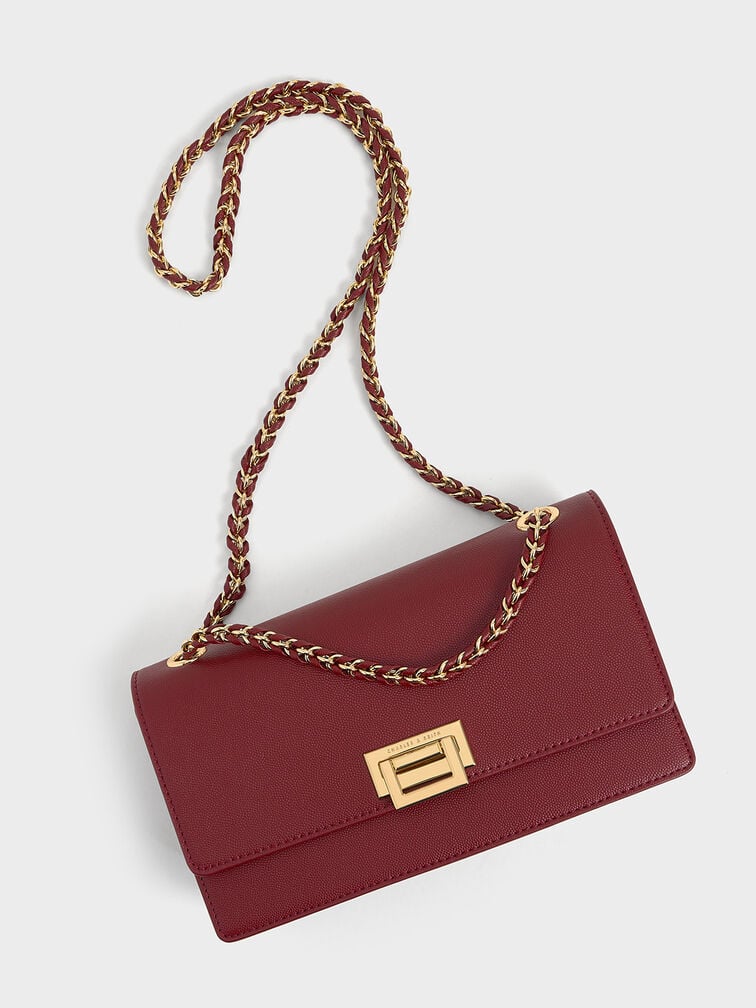 Add an elegant pop of colour to your outfit with this Everline shoulder bag. The classic front-flap silhouette is secured by a metallic push-lock closure, which gives the sleek black finish a touch of shine. The rest of the design is kept minimal, so it will pair effortlessly well with casual and dressy outfits alike. Complete with a braided strap, you can opt to carry it as a shoulder bag, or lengthen the chain to sling it across the body.