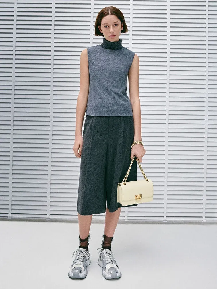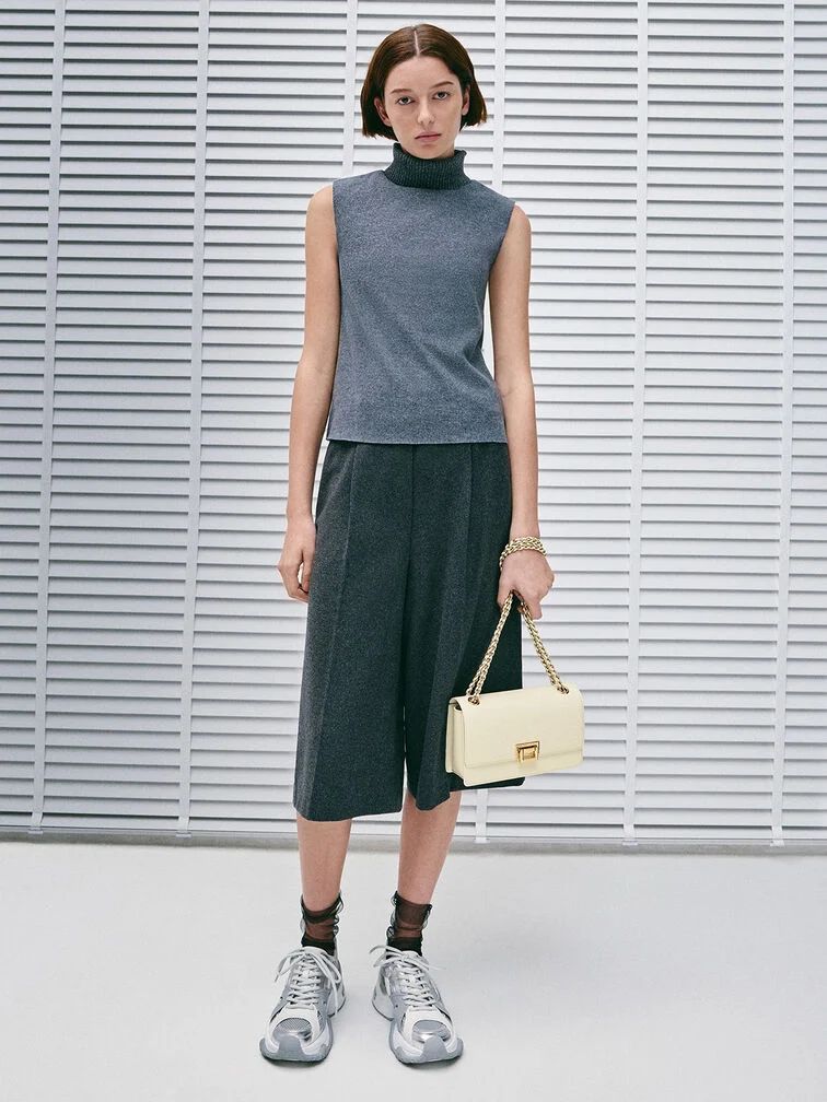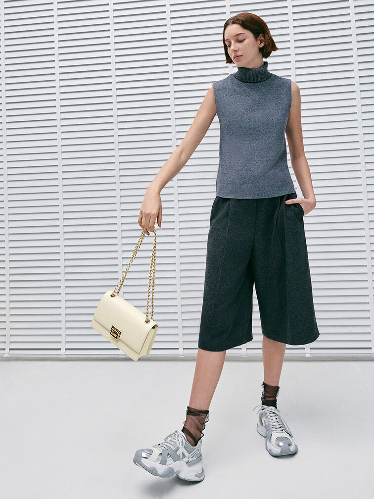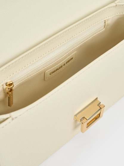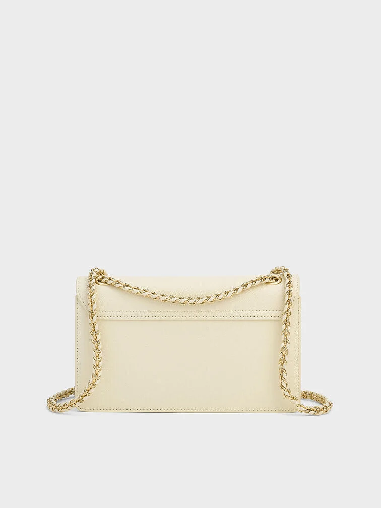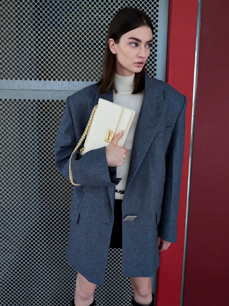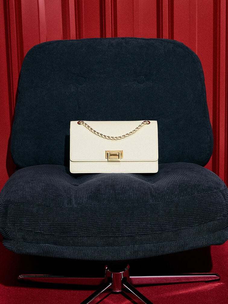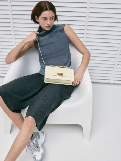 If a clean-lined bag is what you are looking for, then the Everline shoulder bag is perfect. The structured front-flap silhouette is timelessly elegant, especially in cream. Gold-tone hardware elevates the minimalist design, making it a polished option for almost any occasion. Depending on your styling needs, the chain strap also allows the bag to either be slung across the body or carried on the shoulder.