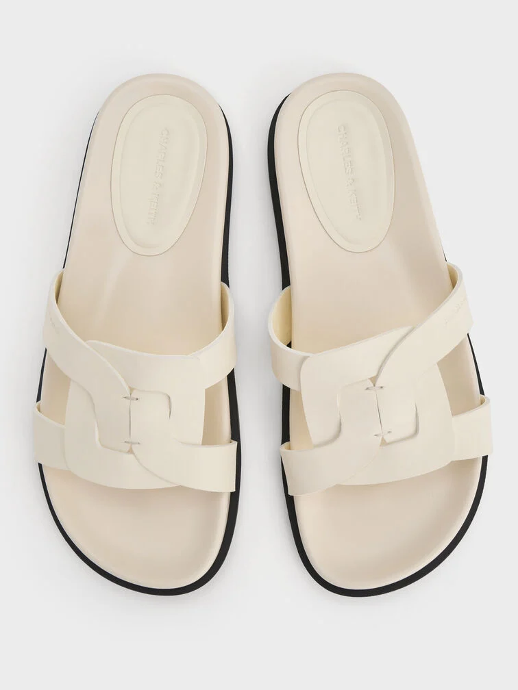 This pair of stylish slide sandals can be dressed up or down to suit the occasion. Faux-leather straps are interwoven to create a striking cut-out design that will add visual interest to any look. In clean white, these shoes will brighten up your summer ensembles and make them stand out.