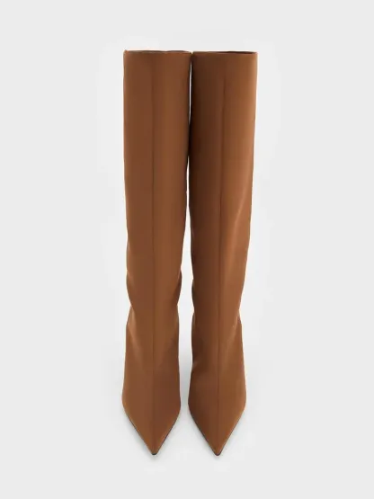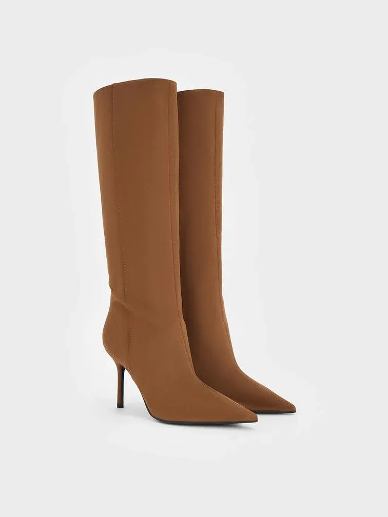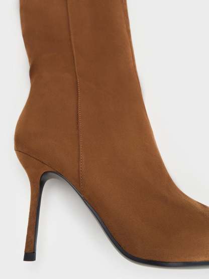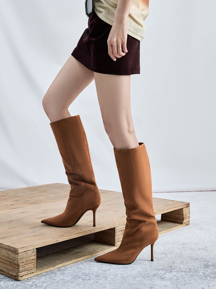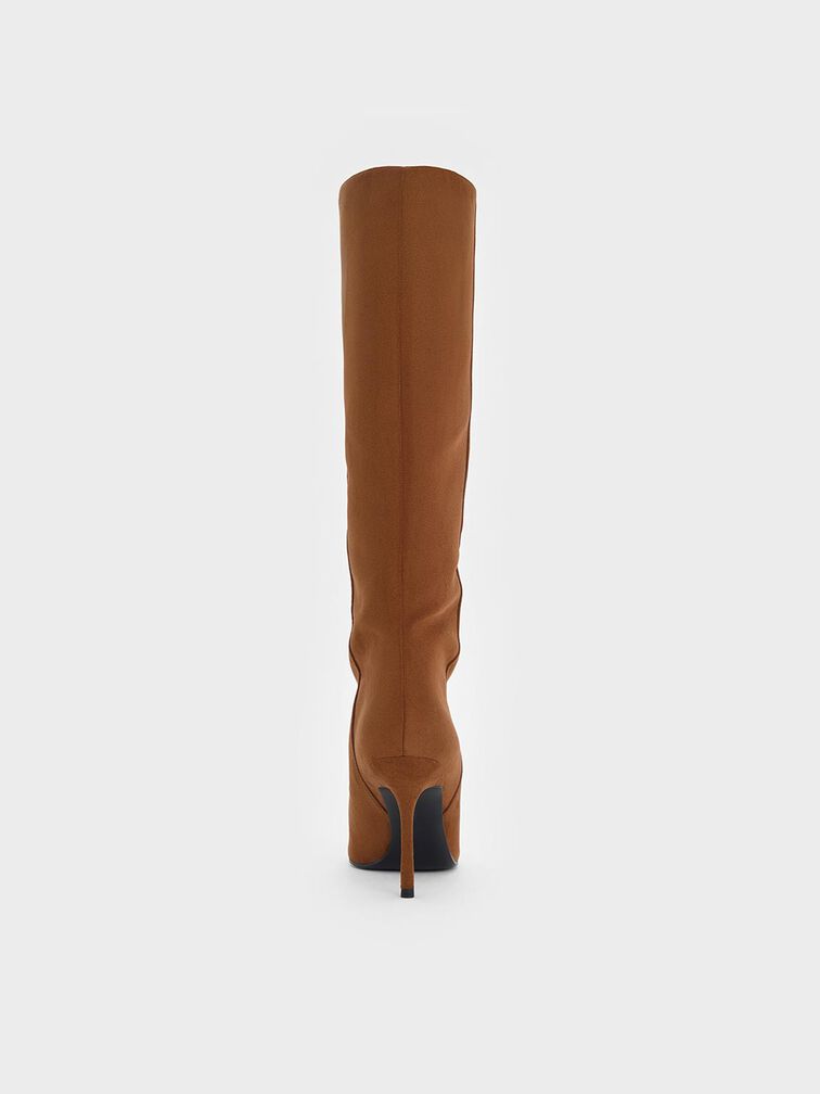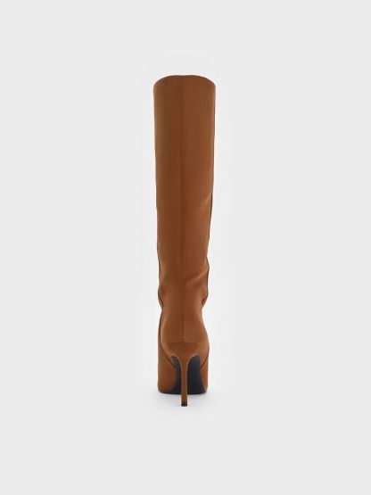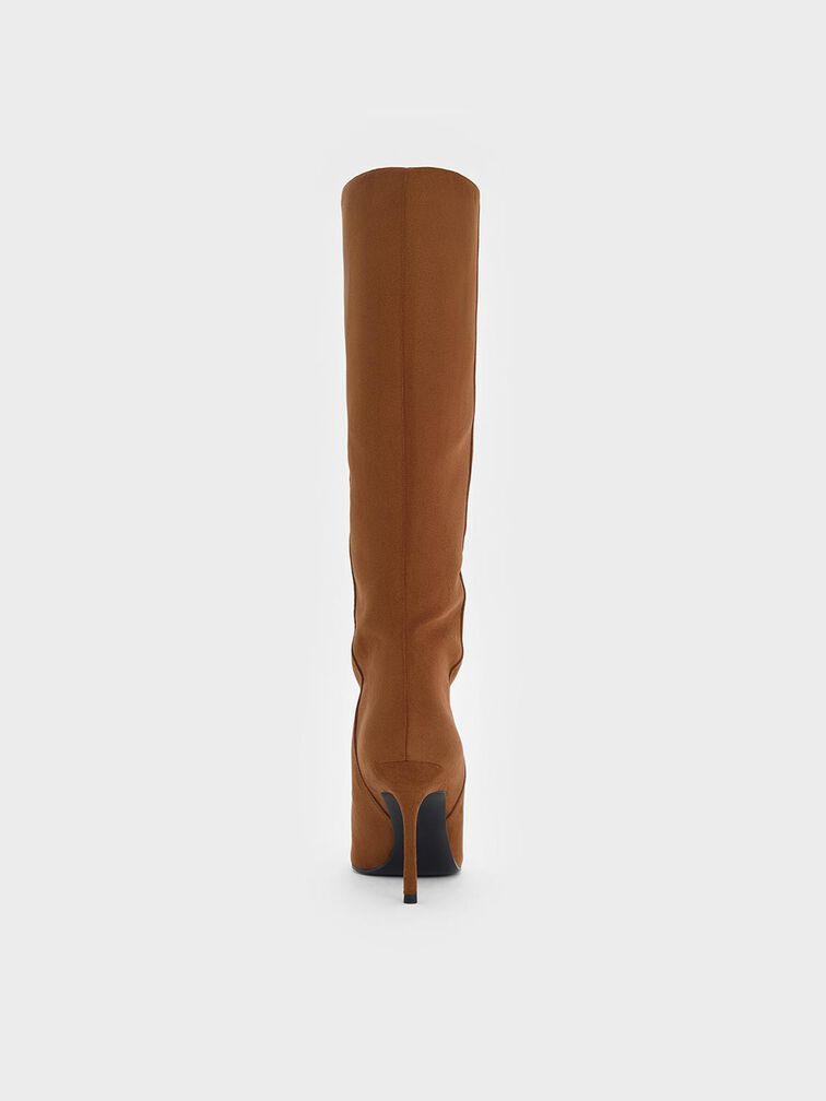 Faux Suede Pointed Stiletto Knee-High Boots - cognac