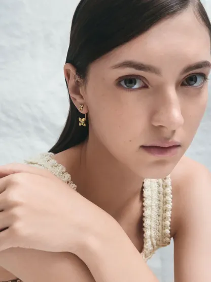 The Felicity jacket earrings feature delicate floral motifs adorned with matching crystal gems. Wear the stud earrings alone for an understated look, or pair them with the lobe-hugging attachments to make a bold everyday statement.