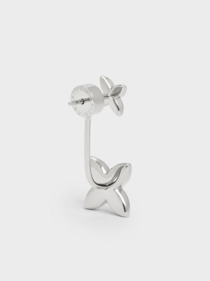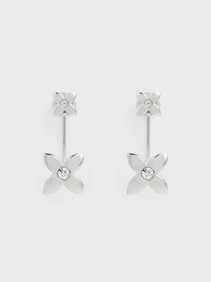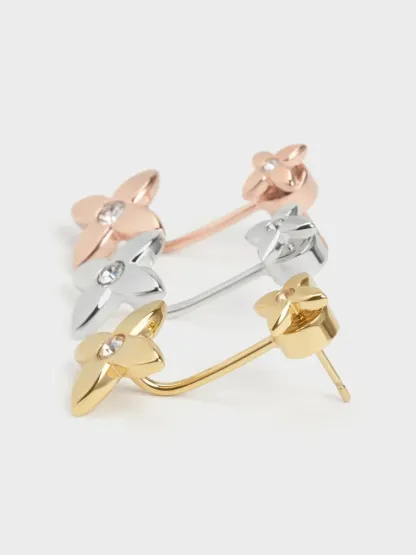 Made for silver lovers, these earrings feature delicate floral motifs embellished with sparkling crystals for an irresistible touch of shine. Wear the studs on their own for a subtle look, or pair them with the lobe-hugging attachments to make a bold everyday statement.