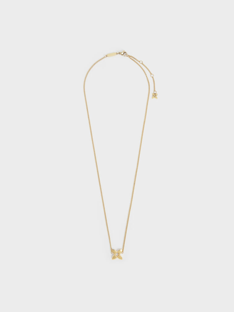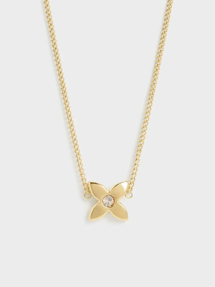 This necklace features a delicate flower-shaped charm, embellished with sparkling crystal gems for an added touch of shine. It can be adjusted to three different lengths, allowing you to layer it effortlessly with other pieces for a personalised look.