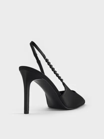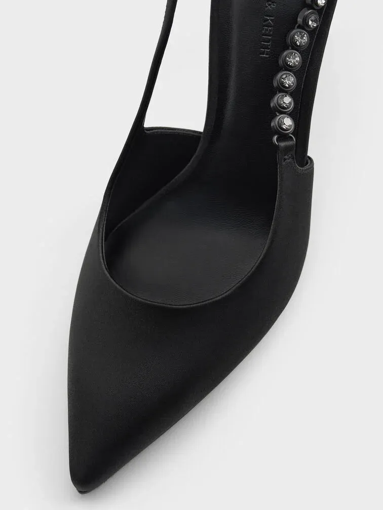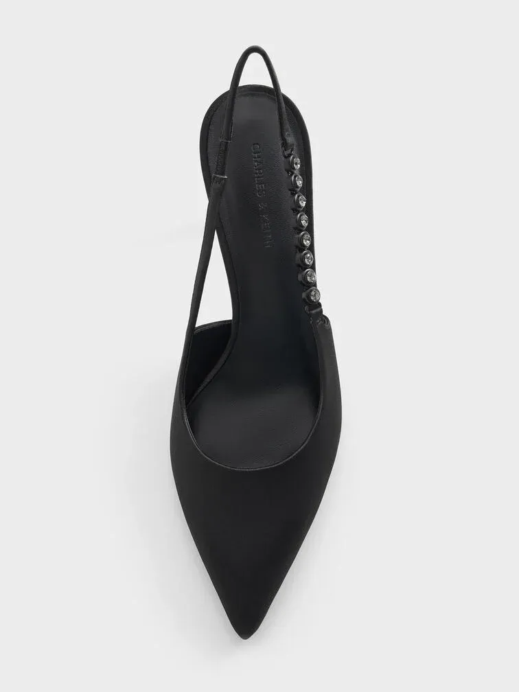 Flores Gem-Strap Slingback Pumps - black
