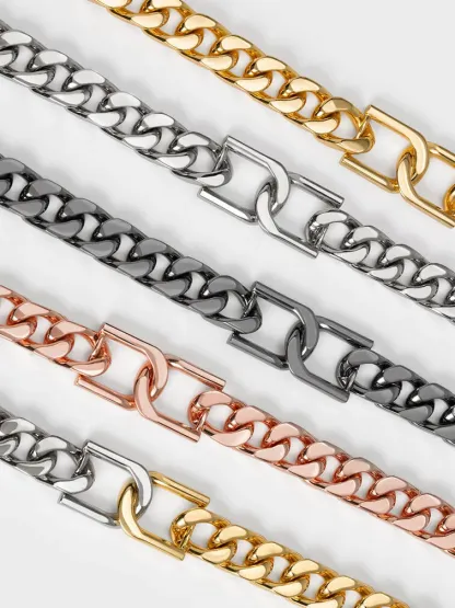 Contemporary and edgy, our Gabine choker necklace is designed to make a bold statement wherever you go. Featuring a classic chain-link design that is completed by a unique interlocking Gabine buckle, this statement piece is perfect for those who love a classic-with-a-twist design. Plus points for the gold-tone finish that will bring an immaculate shine to your looks.