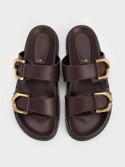 Gabine Gold-Buckle Leather Slides - plum