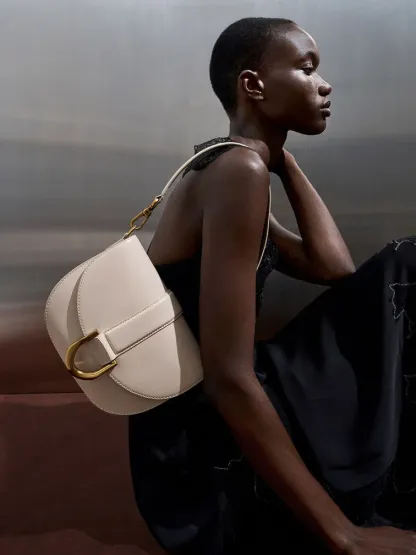 Update your Gabine collection with this oat-white leather version, exuding understated elegance and timeless luxury. Designed for the modern woman, the Gabine bag is perfect for both daytime outings and after-dark events. Its iconic design remains unchanged, from the U-shaped buckle to the classic saddle silhouette, along with the single handle, which can be swapped for a longer shoulder strap for hands-free convenience and versatile styling options.