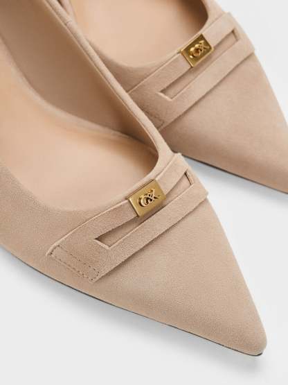 These Georgina pumps in taupe are made with suede and feature pointed toes and kitten heels. Wear them with neutral-tone separates to add soft tactility and refined femininity to day-to-night edits.
