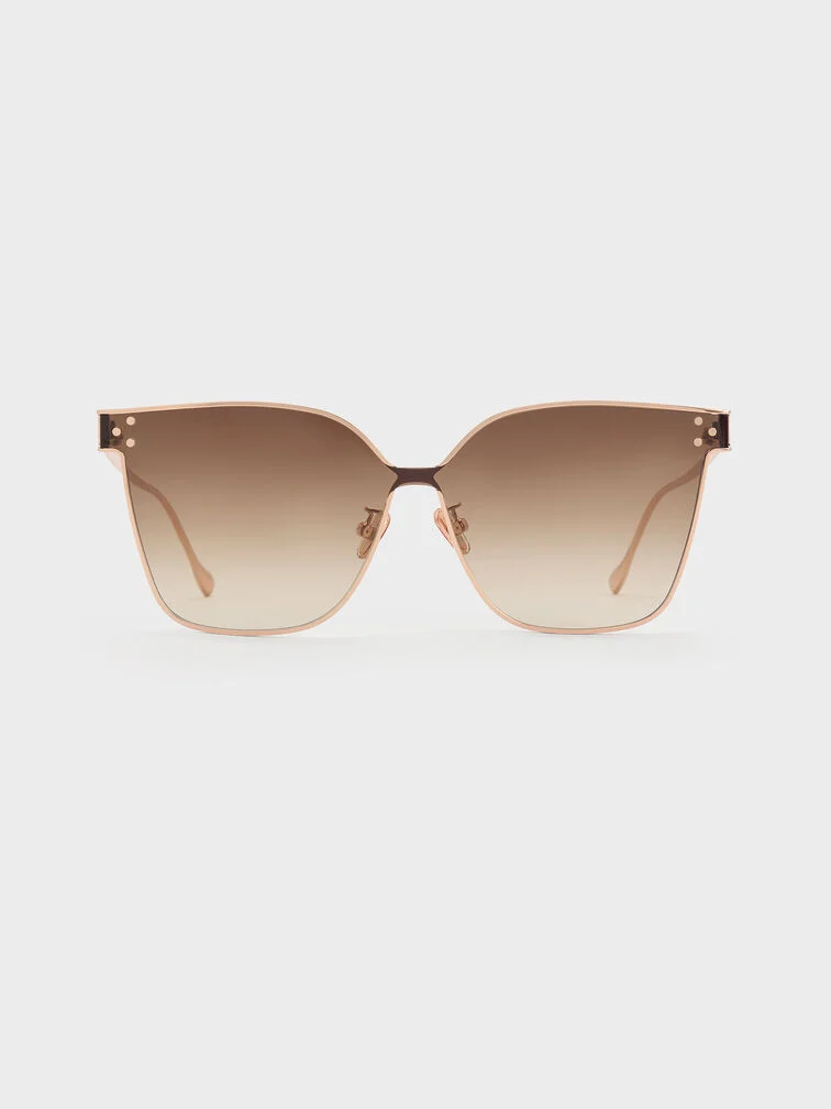 These Ginny sunglasses feature rose gold metal rims, butterfly-shaped frames and dark tinted lenses for a classic finish. These glamorous sunnies will bring vintage charm to your outfits and complete it with a touch of shine.