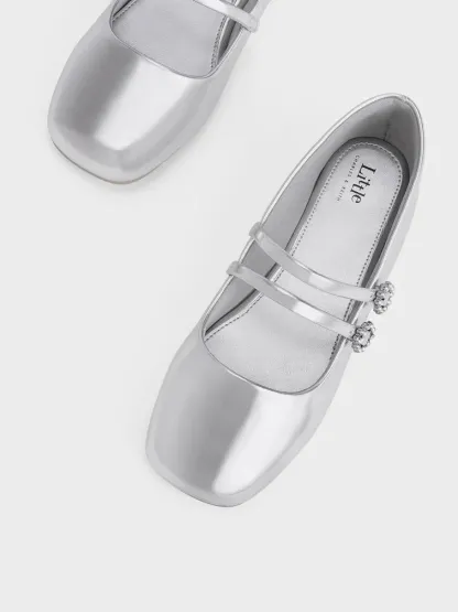 Girls' Gem-Embellished Metallic Mary Janes - silver