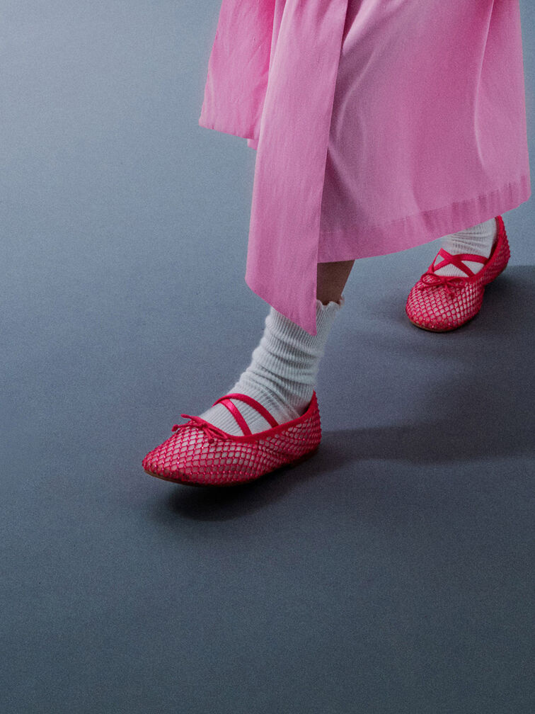 Girls' Mesh Crystal Crossover Ballet Flats - red