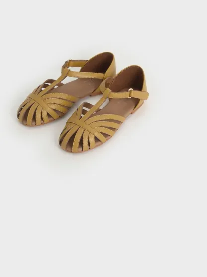 Complement your little girl's sunshine personality with these cute flats in a cheery mustard shade. The T-bar design makes these shoes a versatile pair that can accompany your little one to the park or a birthday party. The bright yellow shade is sure to become her favourite, too. Style this charming pair with a striped shirt and denim romper for a fun day in the sun.