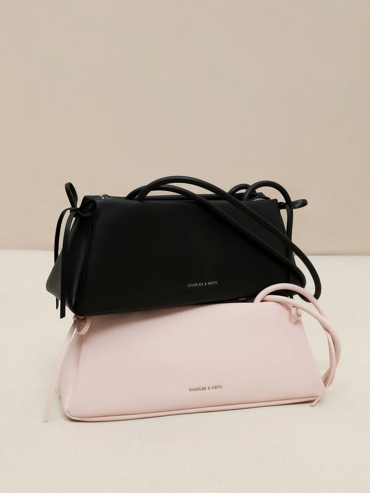 Powder pink and cute little bows make this East-West shoulder bag a must-have piece for the girly girls. Secured with a magnetic closure, it opens up to three sections: 1 main zip compartment along with a front and a back section where you can slot your most-used items for easy access.