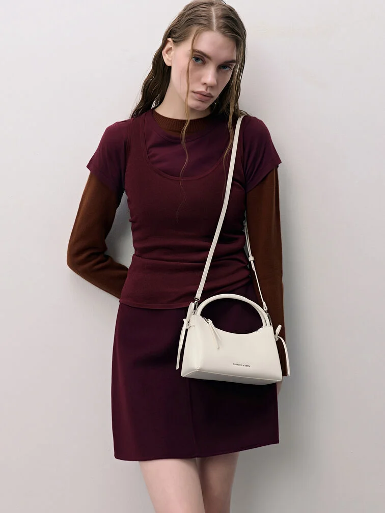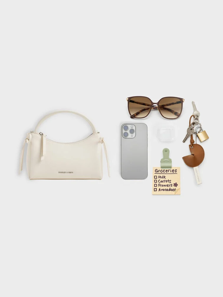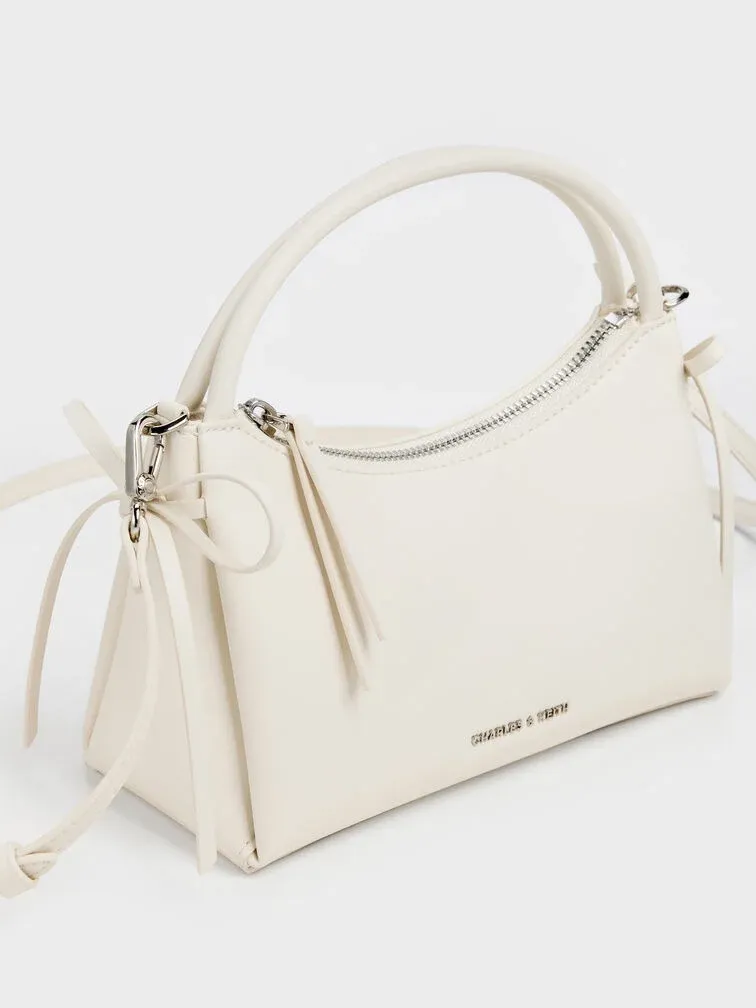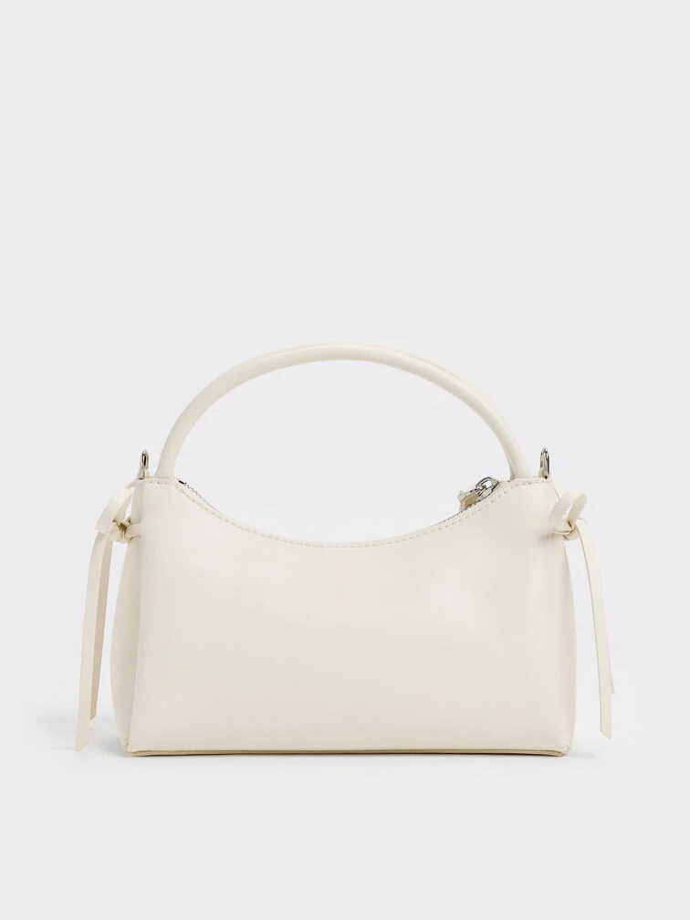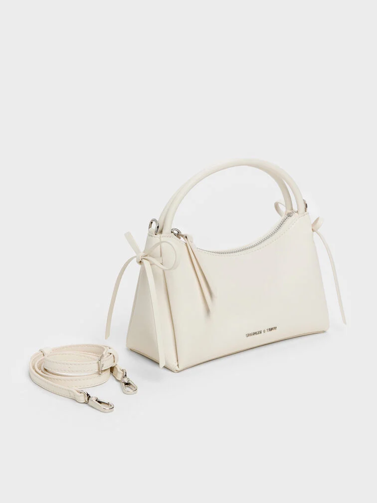 This Hazel top handle bag in cream features a sleek, clean-lined silhouette, feminine side bows and a detachable shoulder strap. Suitable for both work and after-hours events, this versatile bag will slot right into your daily style rotation.