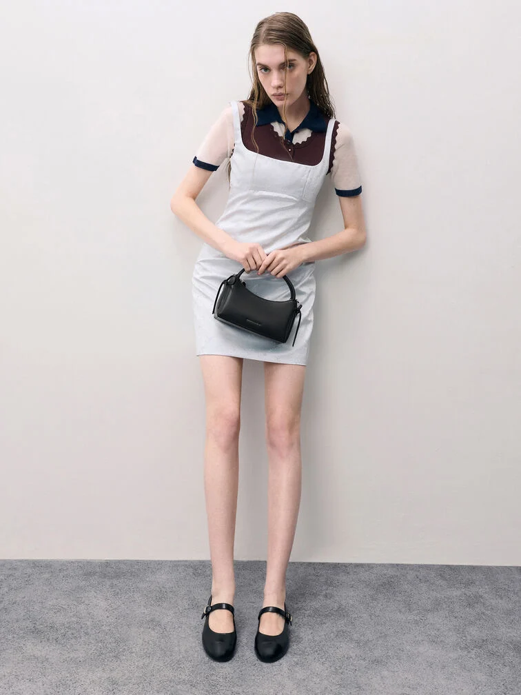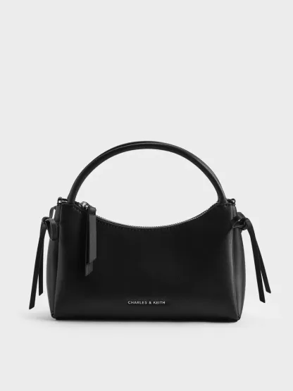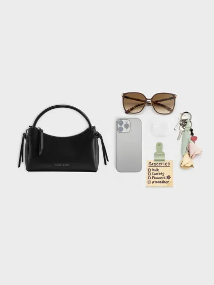 This Hazel top handle bag in black features a sleek, clean-lined silhouette, feminine side bows and a detachable shoulder strap. Carry it with desk-to-dinner edits to keep yourself looking stylish and refined through the day.