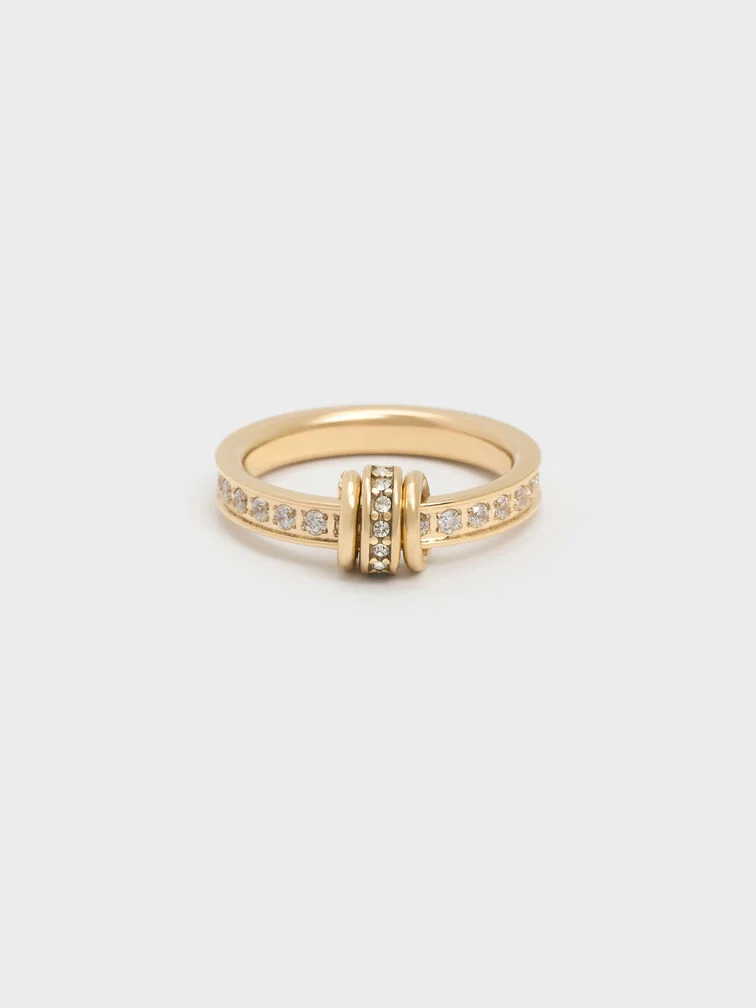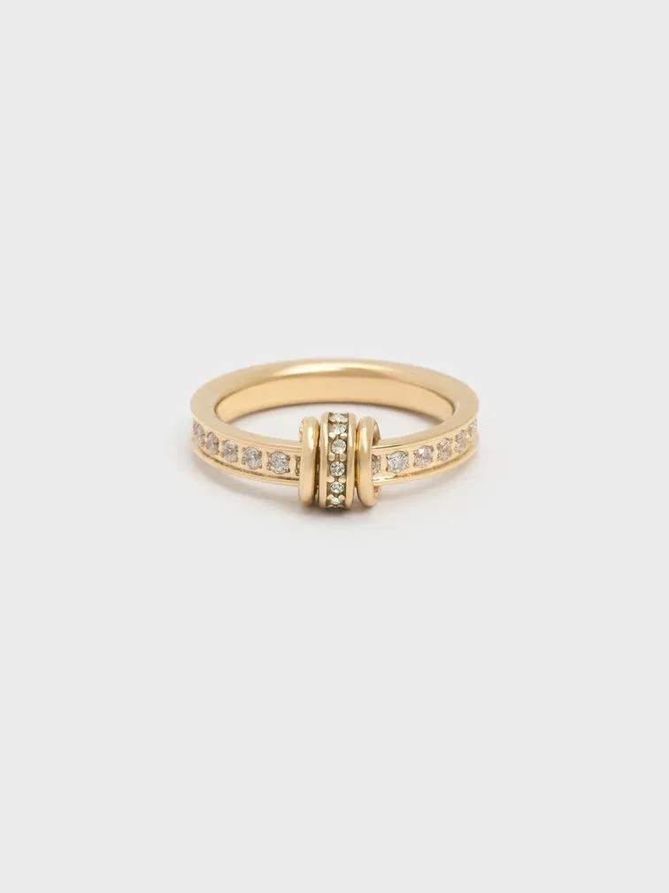 This Hermione ring in gold is embellished with crystals and features an interesting design -- three tiny movable rings are threaded on the band. It will add a small but striking element to both your workday and weekend outfits.