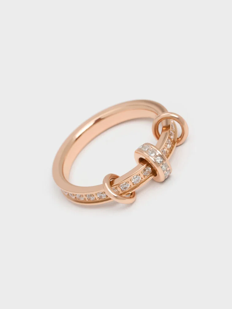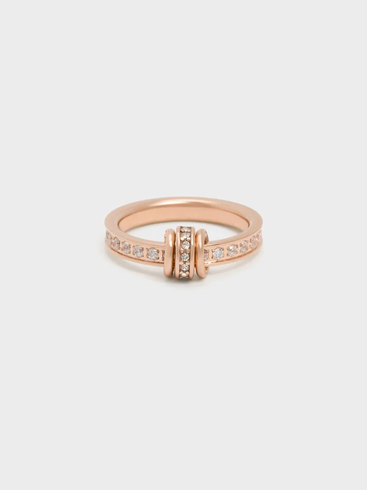 This Hermione ring in rose gold is embellished with crystals and features an interesting design -- three tiny movable rings are threaded on the band. It is perfect for adding a touch of sparkle and movement to your everyday edits.