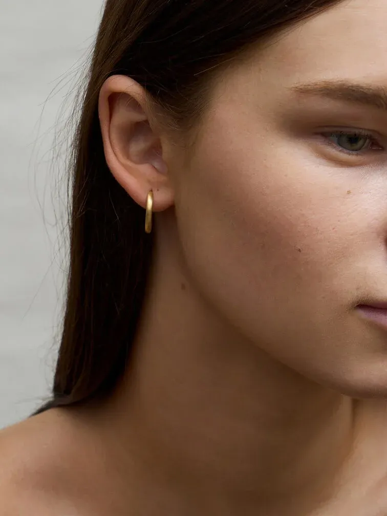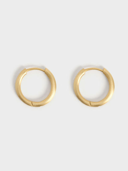 Everybody needs a staple pair of hoops, and this pair is as classic as it gets. The dainty silhouette will elevate your ensembles in an understated way and go well with everything. Wear these brush gold hoop earrings on their own to polish up your everyday looks.