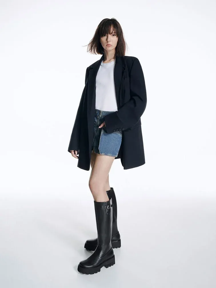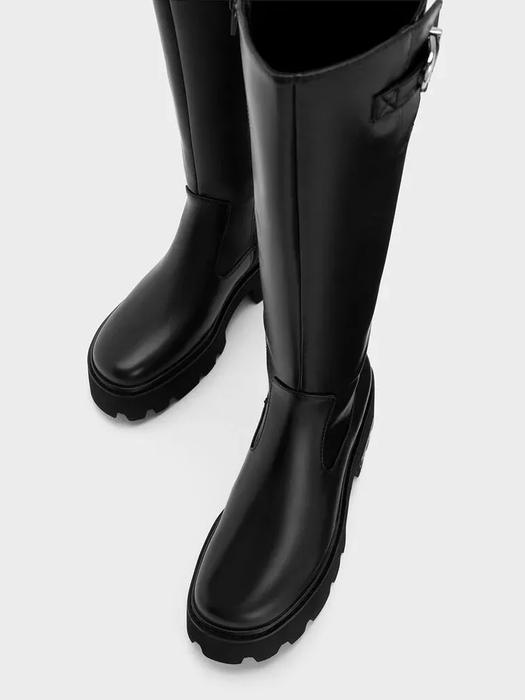 Imogen Side-Buckle Chunky Knee-High Boots - black
