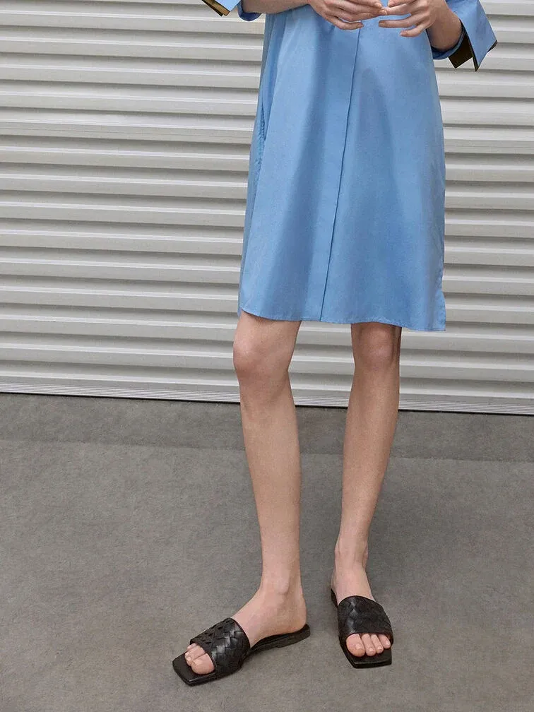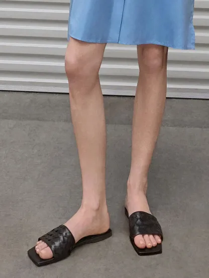 Welcome warmer days with a pair of woven slide sandals. This intrecciato finish adds distinctive flair to the open-toe and open-back design. Set on comfortable cushioned soles, these shoes are the very definition of effortless style.