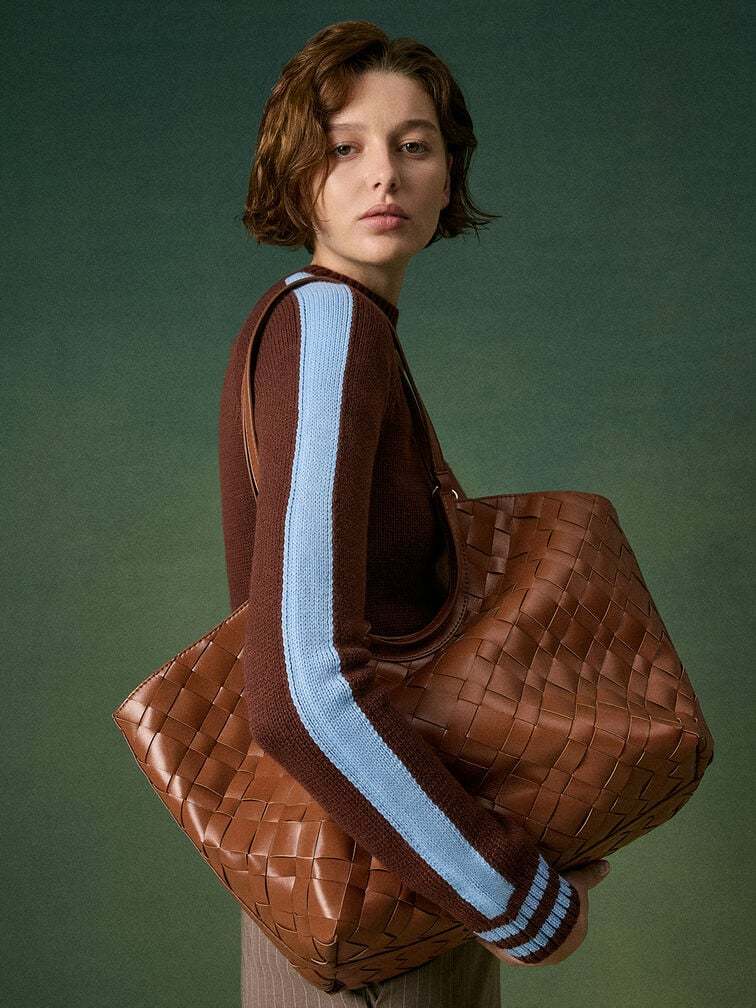 A woven tote bag is a warm-weather essential, but this Ivette one in chocolate-brown is so versatile you will reach for it all year round. The intrecciato finish will effortlessly elevate any look with visual interest while the slouchy oversized design will always look chic -- it will also easily hold everything you need.