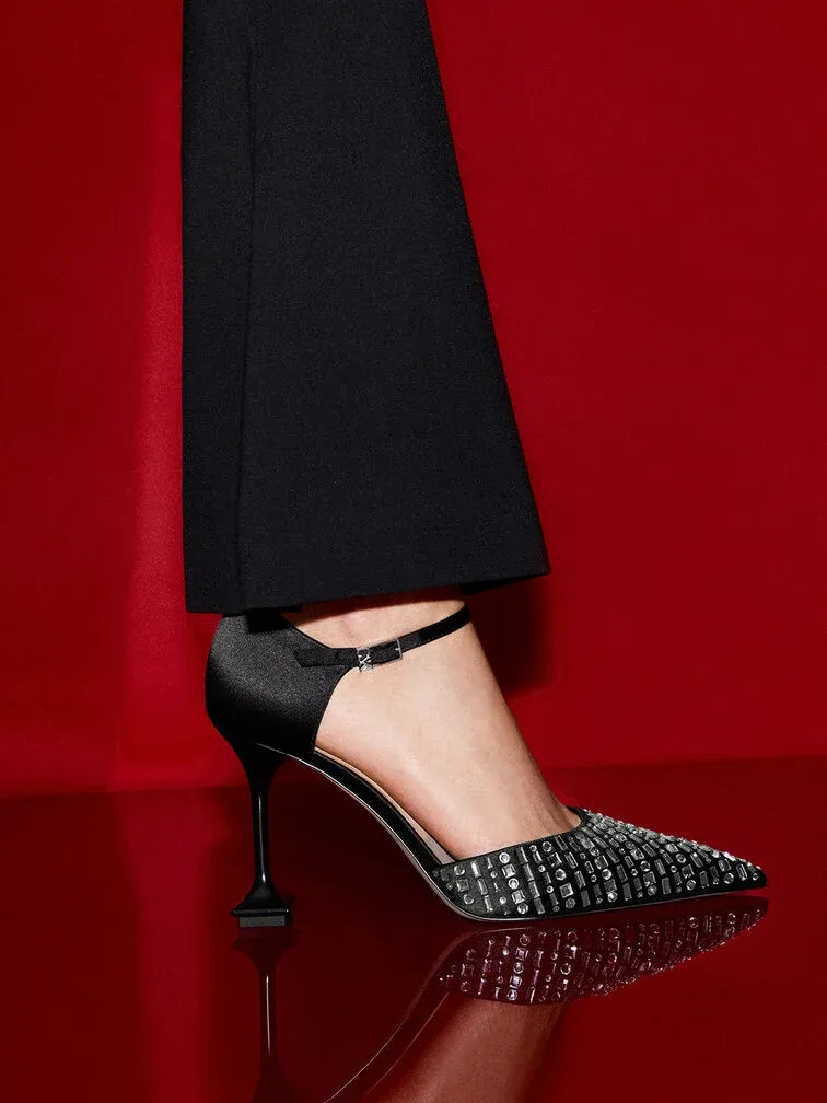 Get ready to have all eyes on you the moment you step out in these Jacqueline pumps. The simple and elegant design is what allows the stunning details of these shoes to take the spotlight. From the stunning crystal embellishments to the sculptural heels that will have people admiring your shoes everywhere you go, there is no shortage of design elements to admire.